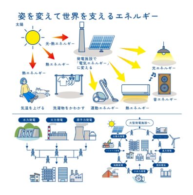 株式会社ベネッセコーポレーションさまより、太陽エネルギーシステム、集中型・分散型エネルギーシステムの説明図などのイラストを作成いたしました。